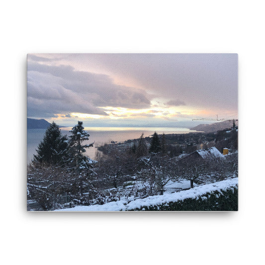 Canvas Wall Art - Sunset over Lac Leman, Switzerland